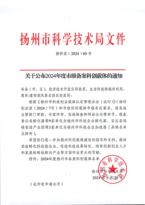 集團旗下匯創·醫療創谷產業園成功獲批揚州市科技企業孵化器 |